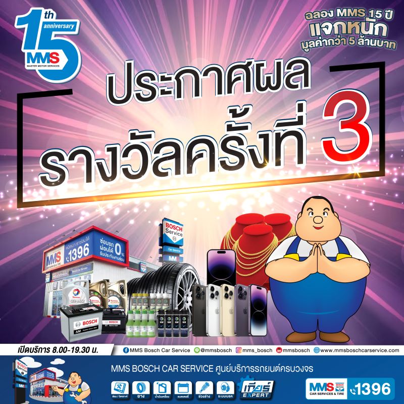 ขอขอบคุณลูกค้าทุกท่าน ที่มาร่วมสนุกกับ กิจกรรม MMS ฉลอง 15 ปี ในครั้งนี้ MMS Bosch Car Service “หนักเบา เราซ่อมได้”